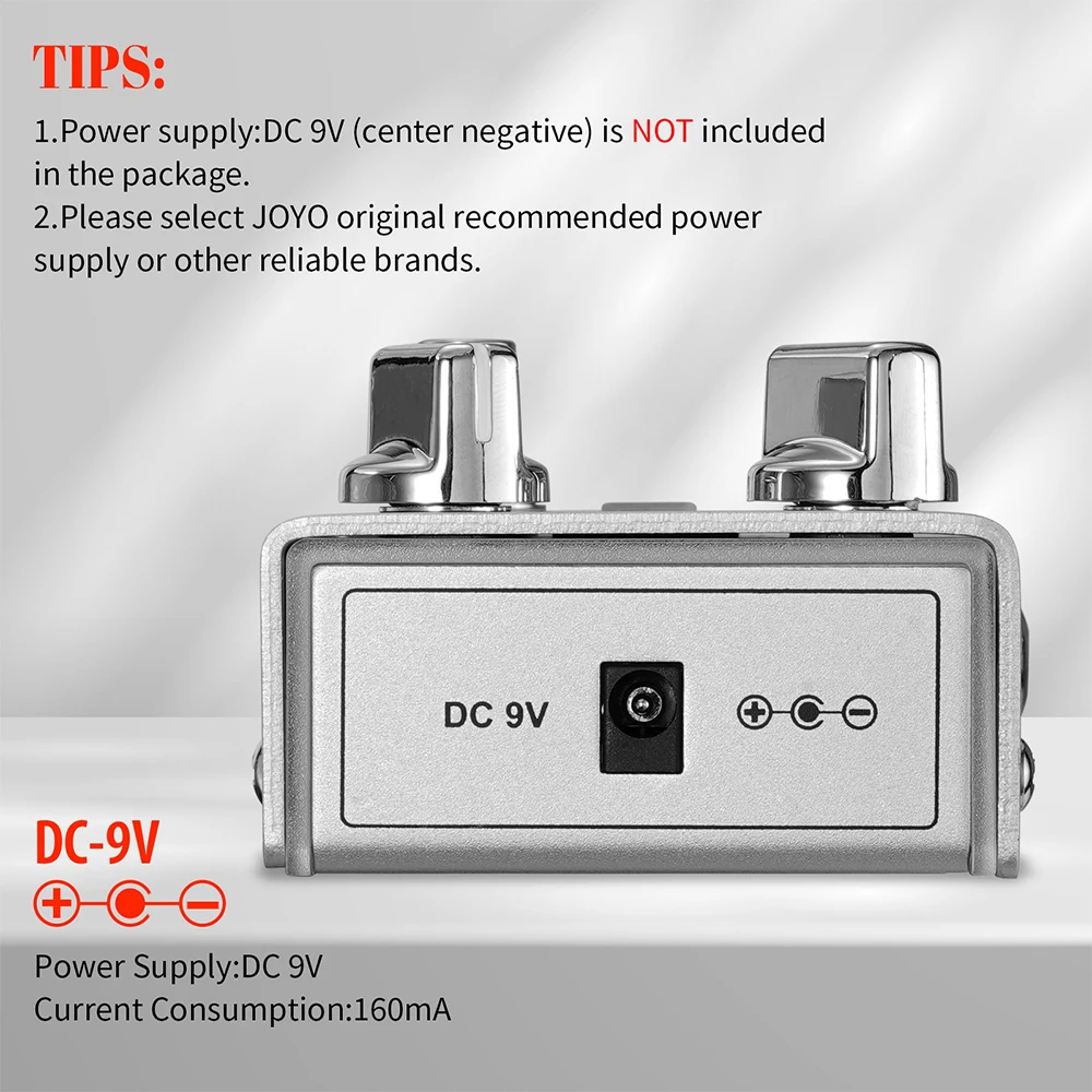 3. In order to make JOYO pedals work properly, avoiding unexpected noise caused by power supply, we recommend that you purchase a JOYO original power adapter, or choose other reliable brands.